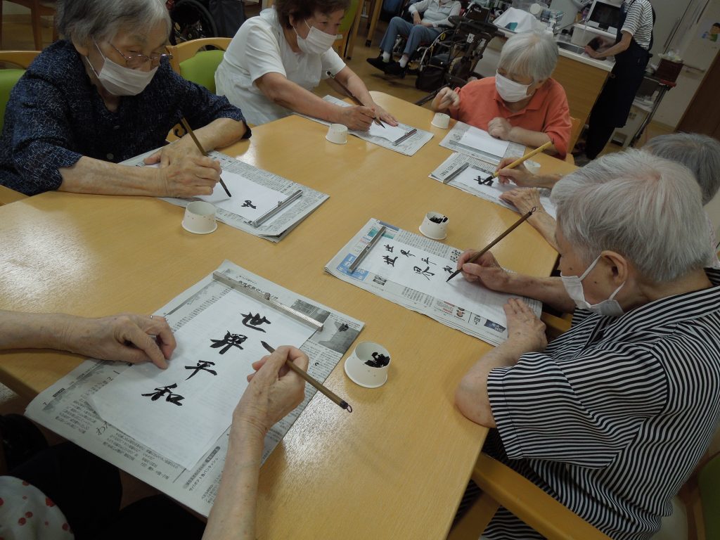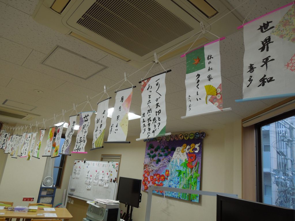 心を落ち着けてお習字にいそしみました。テーマは秋、思い思いの秋をかみしめて筆を動かしました。個性が現れる文章と味のある筆さばきは皆さま流石でございます。